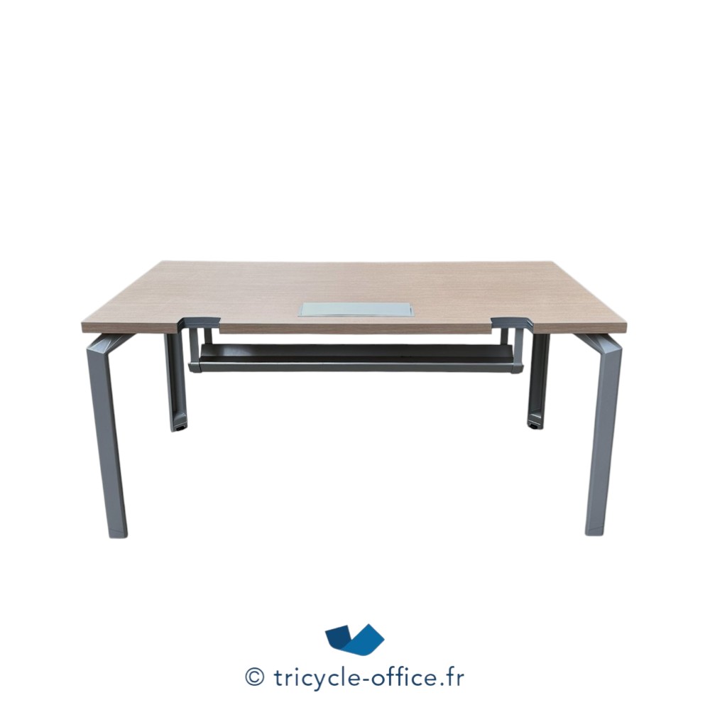 Son système intégré de gestion des câbles au centre du plateau permet de garder un espace de travail propre et organisé en dissimulant les fils d’ordinateur, d’écran ou de lampe.