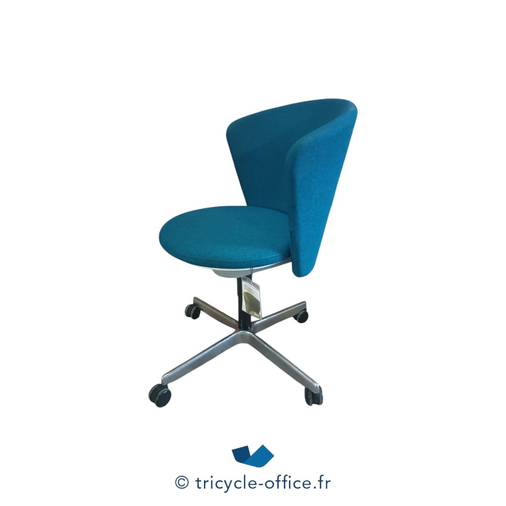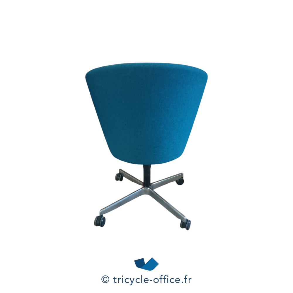 La chaise repose sur un piètement étoile en métal avec roulettes, permettant une mobilité fluide et une grande stabilité.