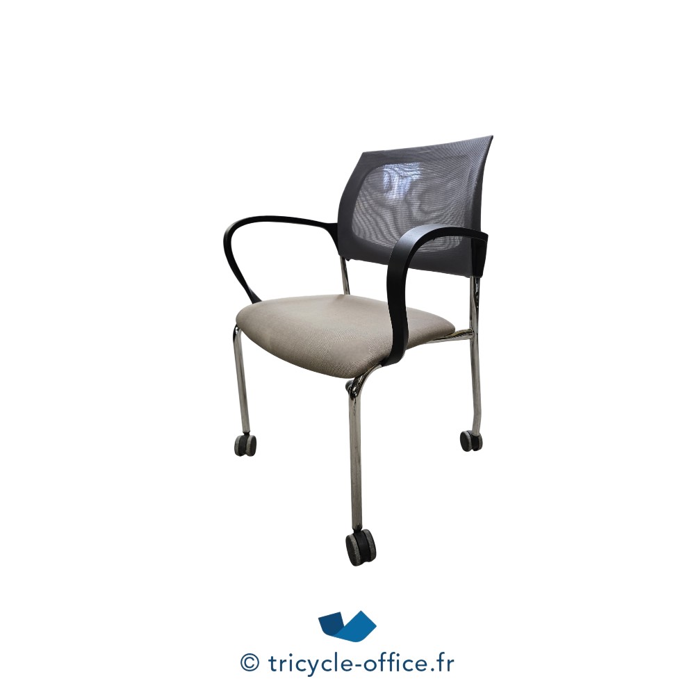 Chaise de réunion gris et noir à roulettes – Occasion